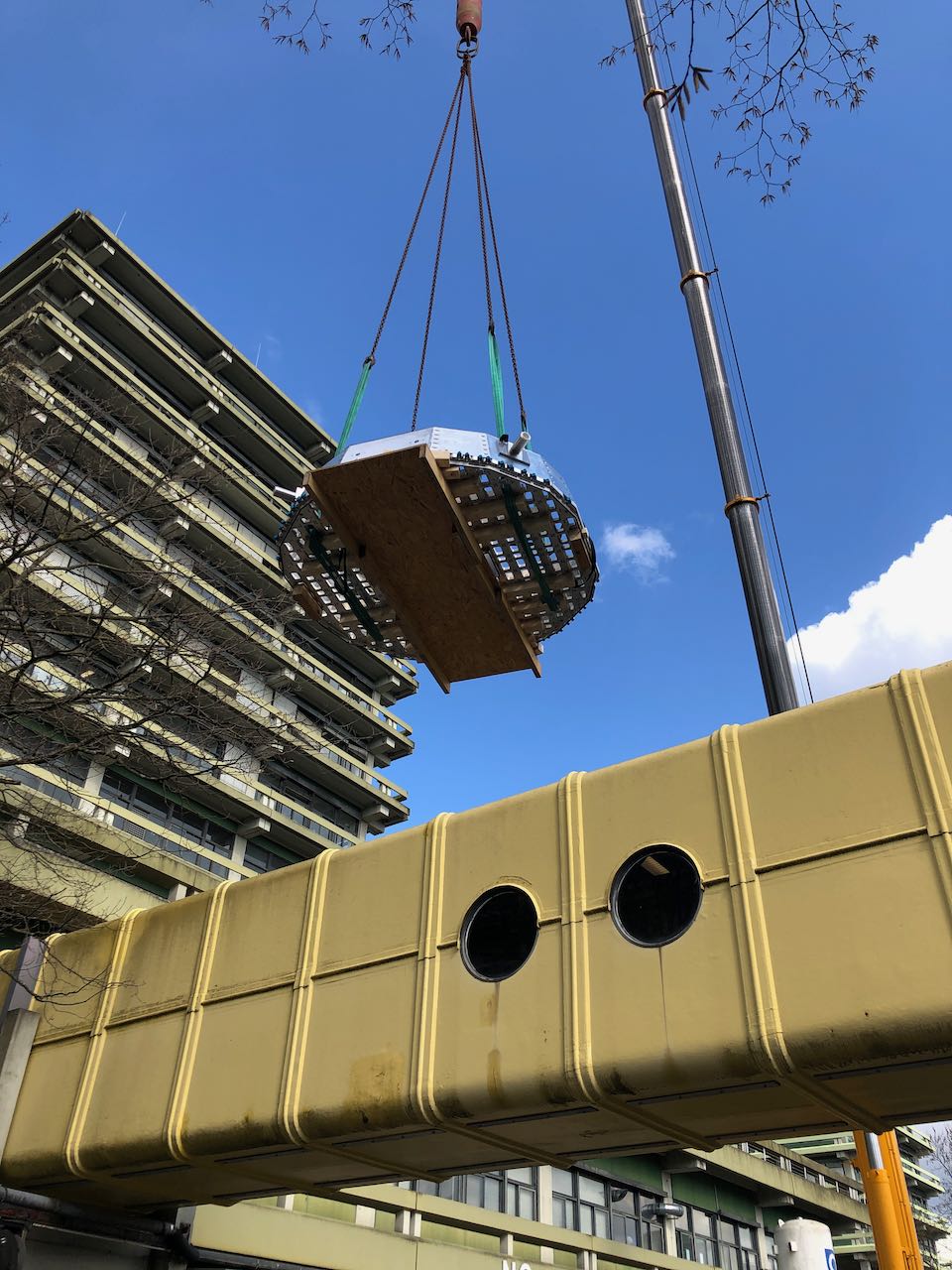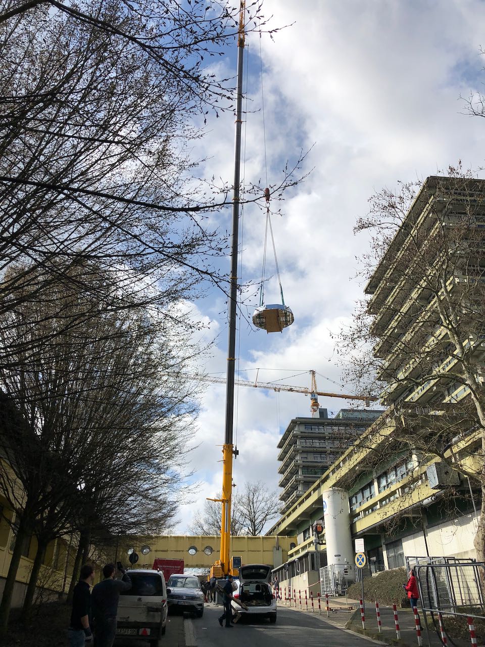 The members of the EP1 chair accompanied the forward end cap, which is a highly complex, precious one-off, on its journey to its interim destination in Jülich on their own initiative. During the carefully planned transport, unexpected complications arose at the last minute. Due to a short-term closure of the N-Südstraße, the end cap had to be lifted with another crane. In the photo gallery you can see some snapshots of this spectacular action, which caused some moments of fear and hopefully did not lead to UFO sightings over Bochum.